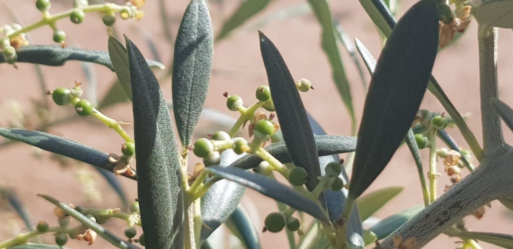 Como apreciamos en las fotografías, el fruto ya se ve, tanto en los olivares de la variedad arbosana como en los árboles de arbequina, siempre algo más adelantados en su proceso de maduración.